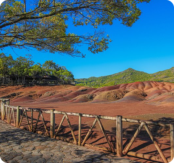 • Seven Coloured Earths (Chamarel) – volcanic sand dunes glowing in shades