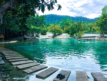 Wander jungle paths to mineral pools and warm cascades; swim where the water glows a glassy jade.